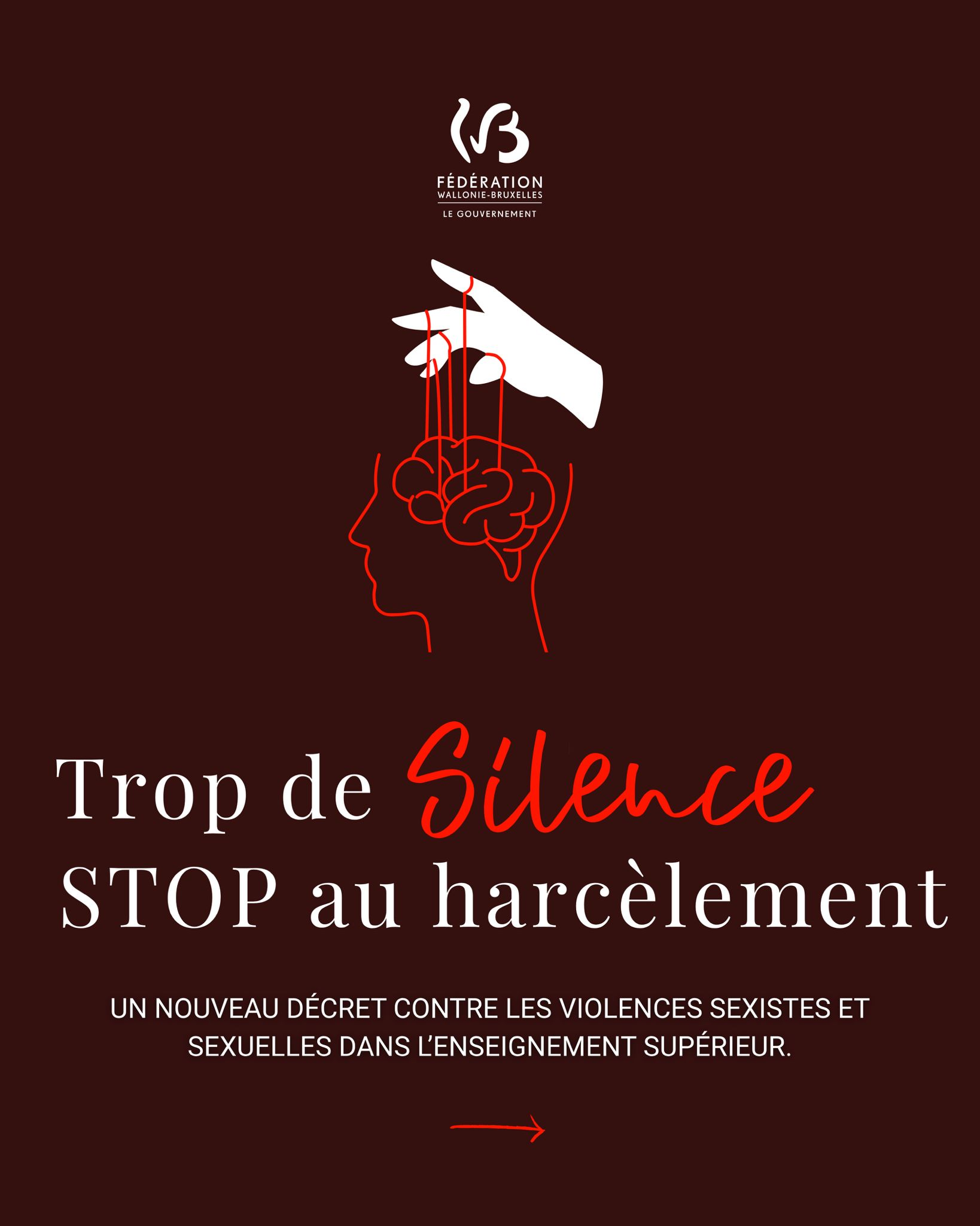 « Ce décret marque une étape importante dans la lutte contre le harcèlement, les violences sexistes et sexuelles, et les discriminations dans l’enseignement supérieur. Il consacre un cadre clair et cohérent pour garantir à chaque étudiante et étudiant un environnement d’apprentissage respectueux, sécurisé et équitable. Il est de notre responsabilité de créer les conditions d’une parole libre, d’un accompagnement renforcé des victimes et d’une réponse ferme face aux comportements inacceptables. L’engagement des établissements, des acteurs de terrain et de la société civile souligne une volonté collective de faire évoluer durablement les pratiques » indique Yves Coppieters, Ministre de l’Égalité des chances.